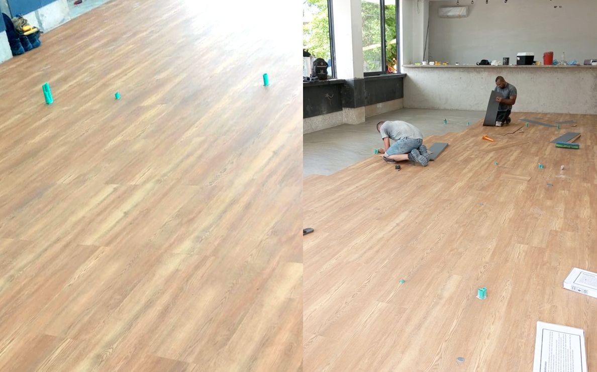 The Vinilos e importaciones de colombia team conducted a preliminary assessment of the property's overall structure and floor condition. They proposed various LVT patterns to complement the interior design scheme.